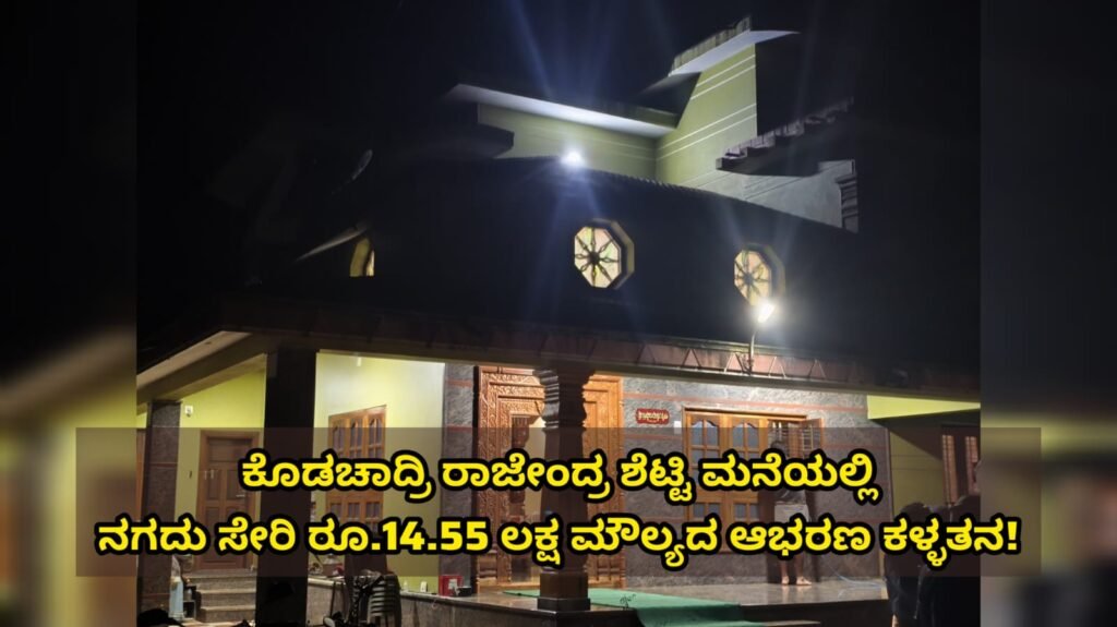 ಕೊಡಚಾದ್ರಿ ರಾಜೇಂದ್ರ ಶೆಟ್ಟಿ ಮನೆ ಕಳ್ಳತನ : ನಗದು ಸೇರಿ 14.55 ಲಕ್ಷ ಮೌಲ್ಯದ ಚಿನ್ನಾಭರಣ ಅಪಹರಣ