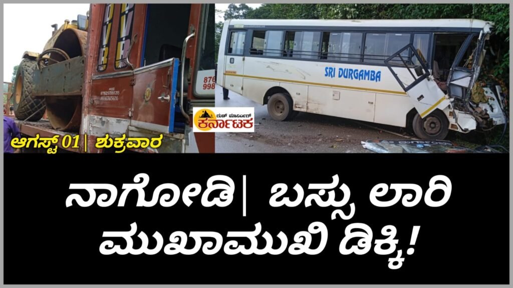 ನಾಗೋಡಿ| ಬಸ್ಸು ಮತ್ತು ಟಿಪ್ಪರ್ ಲಾರಿ ಮುಖಾಮುಖಿ ಅಪಘಾ*ತ | ಬಸ್ಸಿನ ಮುಂಭಾಗ ಜಖಂ