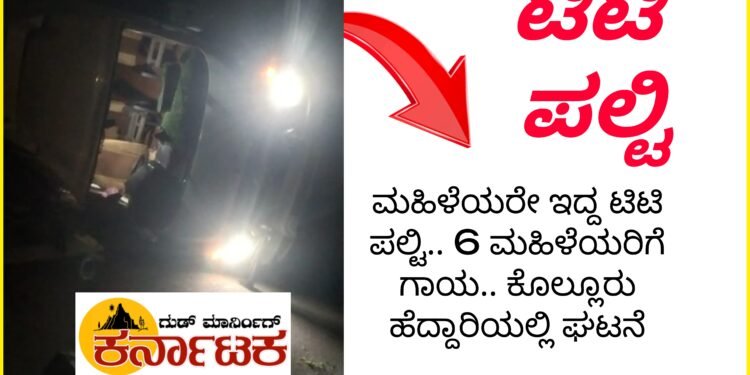 ಮಹಿಳೆಯರೇ ತುಂಬಿದ್ದ ಟಿಟಿ ವಾಹನ ಪಲ್ಟಿ : 6 ಮಹಿಳೆಯರಿಗೆ ಗಾಯ : ಕೊಲ್ಲೂರು ಹೆದ್ದಾರಿಯಲ್ಲಿ ಅಪಘಾತ